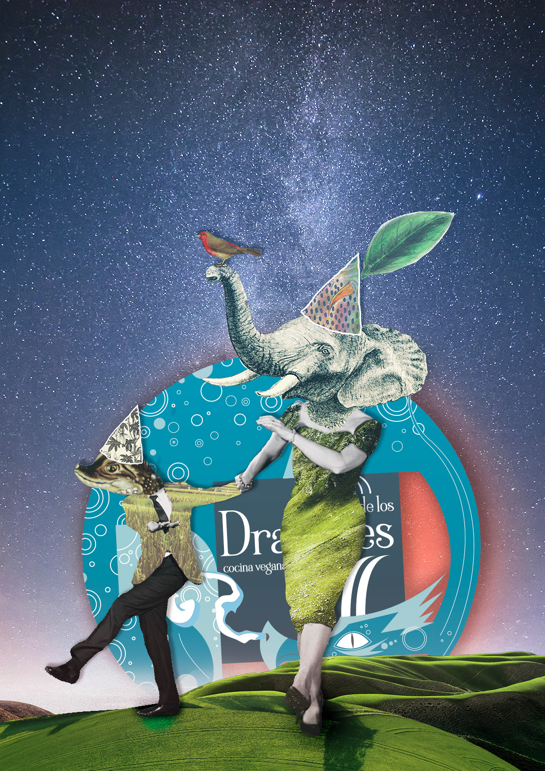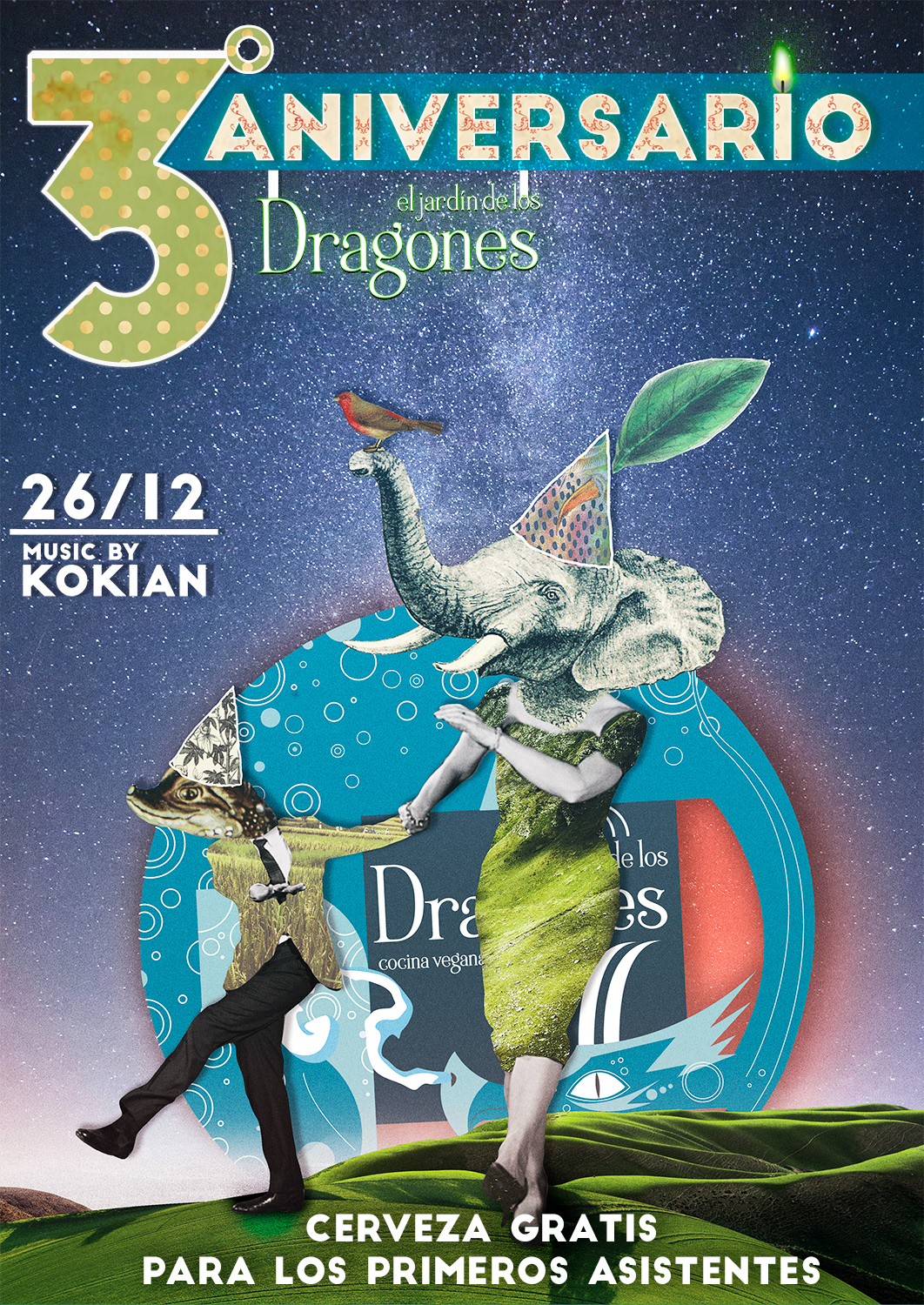 Ilustración y cartel para el tercer aniversario del restaurante vegano "El jardín de los dragones"
