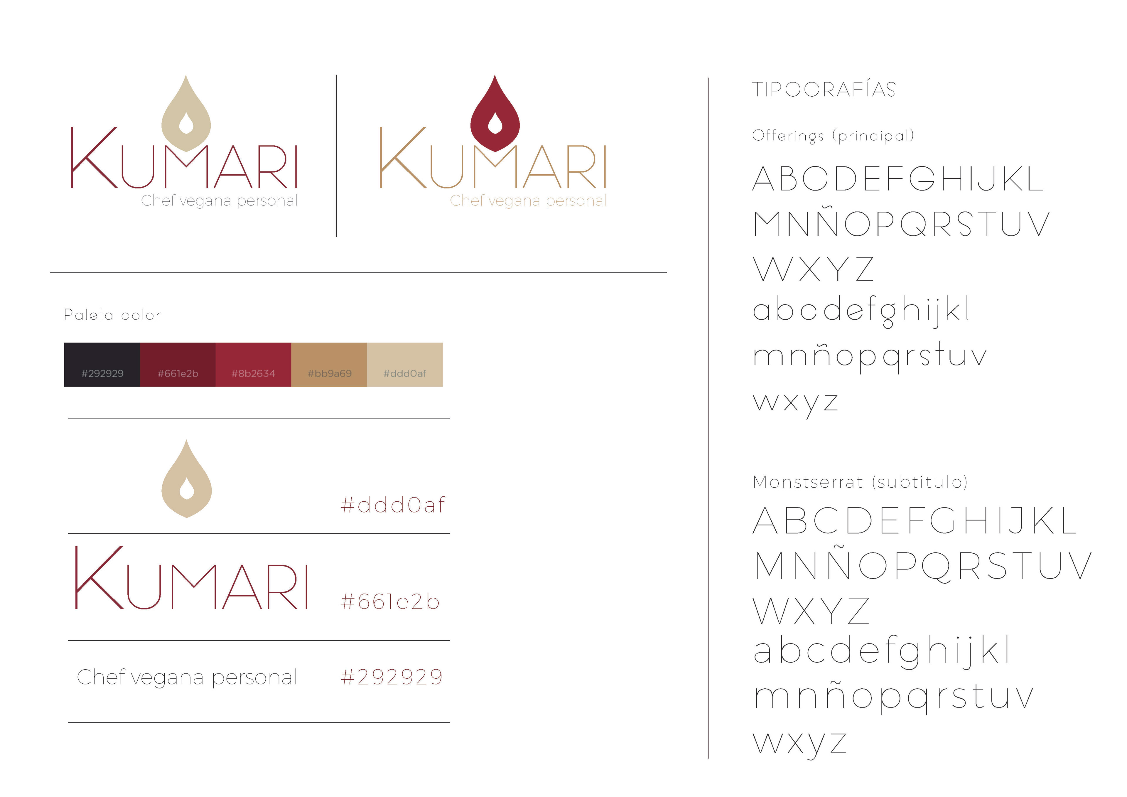 Diseño de identidad para la cocinera vegana Kumari. El diseño estuvo muy marcado por el cliente.